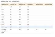 Low: 30 // High: 160 // Vent Temp: 57* // Suction Temp: 71* // Discharge Temp: 115*